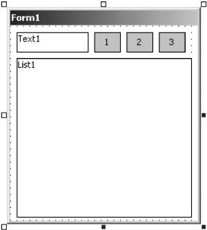 2. Разместить на форме компоненты TextBox, ListBox и три кнопки CommandButton так, как это показано на рис. 3.22.