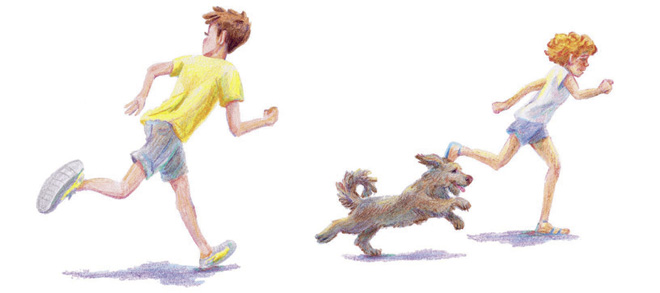 В тот день, когда Сашка по-настоящему познакомился с загадочной девчонкой, она снова пришла на пляж с новой собакой. Пёс был забавный: серо-коричневый, с короткими лапами, хвостом, закрученным в бублик, и большим круглым носом, похожим на сливу. Коротколапый не боялся волн и вошёл за девчонкой в море, так что она не стала заплывать далеко. Сашка тоже бухнулся в воду и изо всех сил делал вид, что просто плавает. Он мог и на спине, и кролем, и брассом, и под водой, глубоко, проплывая у самого дна метров пять, а то и десять. Когда он в очередной раз вынырнул, девчонка была уже на суше, и Сашка рванул к берегу, где происходило что-то странное. Пёс скакал по песку и лаял, рыжей видно не было, а возле валунов стоял какой-то парень, который, смеясь, крутил над головой мокрую тряпку.