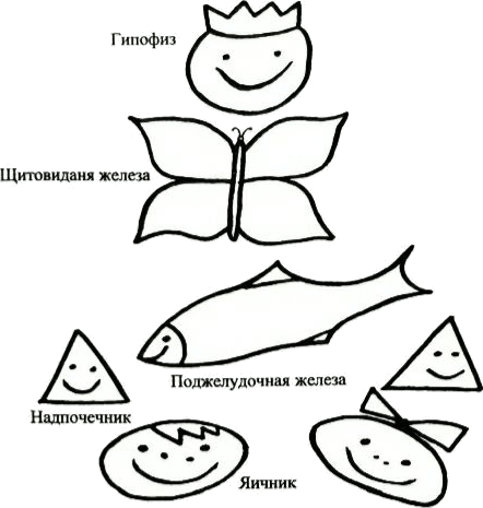 Рис. 2. Схема здоровых эндокринных органов