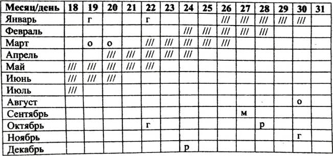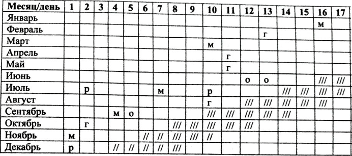 Рис. 3. Менструальный календарь (объяснения в тексте)