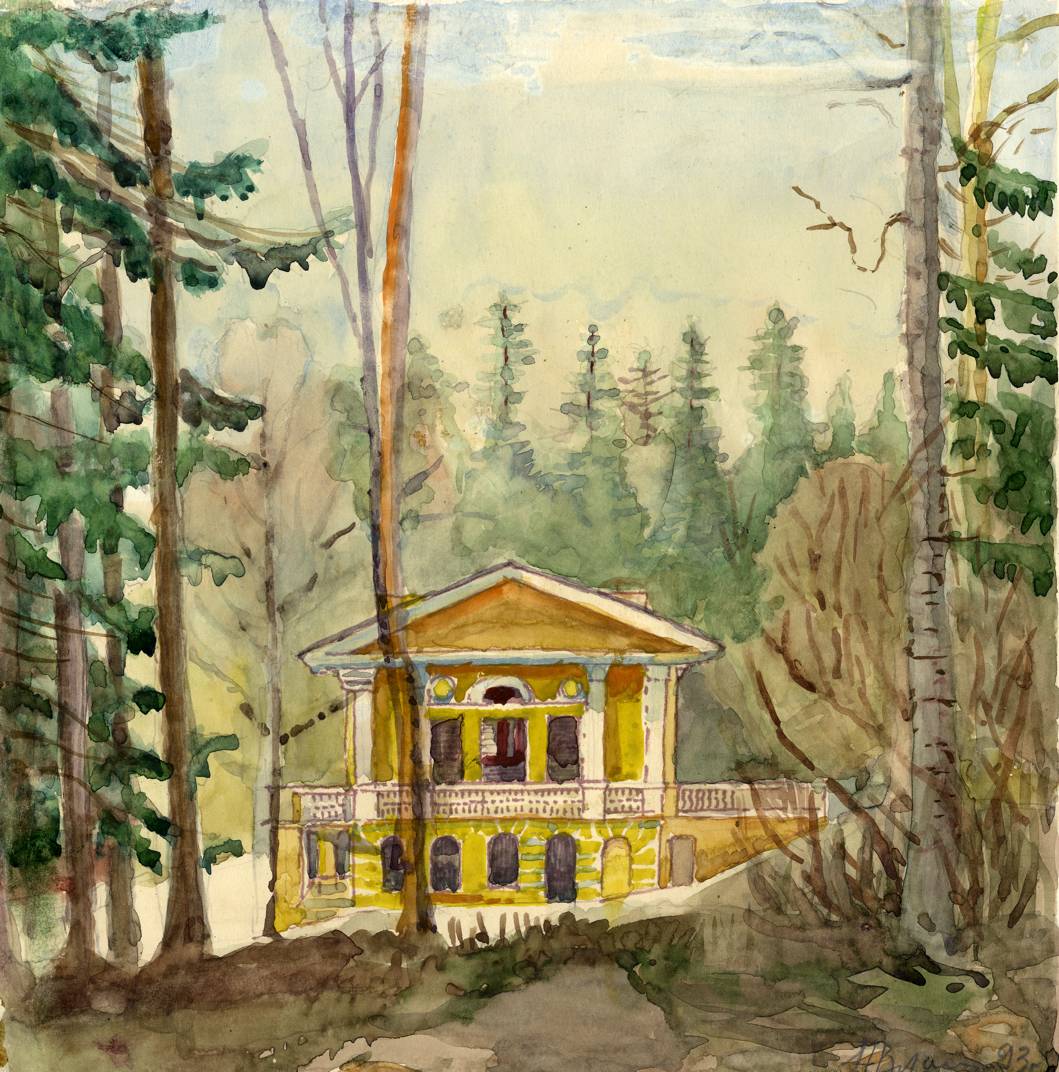 Здание столовой в Лунёве. Акварель Н.Н. Владимирской