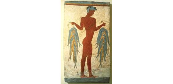 И повторяю, та мифология, в которой связывают греков с Критом – это греческая мифология. Это то, что рассказывают греки о своих богах, но не Крит о себе. А он рассказывает о себе только оставшимися фрагментами при раскопках, многие из которых были сделаны на рубеже 19 -20 веков Эвансом Артуром, за что ему низкий поклон. Это он открыл перед нами окно в эту цивилизацию. Еще на острове Санторини, где та же самая цивилизация была превращена в осколки. Там есть какие-то признаки. И ни слова, ни гу-гу, ни письма. Как мы можем сложить фрагменты этих глобусов? Ведь этот юноша похожий на цветок со своим красным, загорелым телом и со связкой рыбы больше смахивает на девушку.