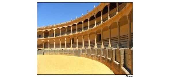 Вы, когда-нибудь видели деревенскую корриду? Любимое развлечение юношей. Открывают двери загона и быки начинают бежать, а парни через них прыгают – дурака валяют. Это, так называемая деревенская коррида, которая до сих пор сохранилась в деревнях. Так вот, я видела документальный фильм и убеждена на 100 процентов, что это игры древнего Крита. Весь культ корриды ушел не в Грецию, а через финикийцев перетек на юг Испании. И там пророс. Видите, как интересно. Странные мосты времени. На юге Испании есть удивительное место, называется Ронда. Туда надо ехать все время вверх, по такой очень петлеобразной дороге – я их терпеть не могу. Так вот, в этом самом местечке, под названием Ронда, находится первая в истории арена для профессиональной корриды.