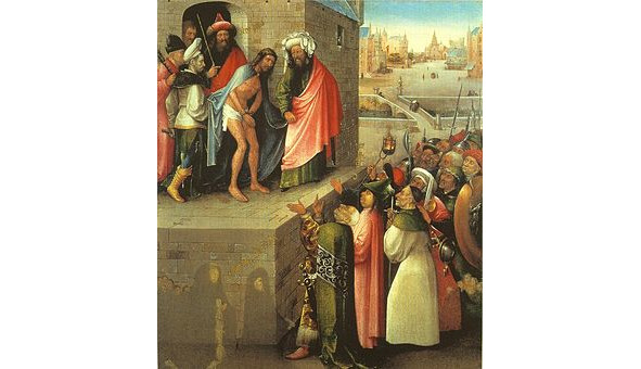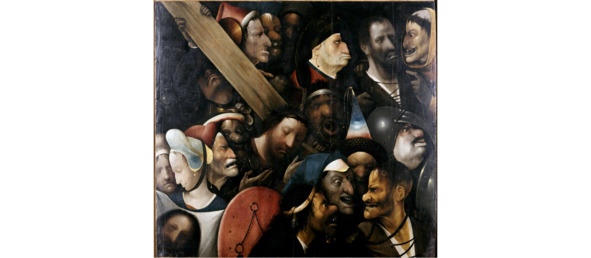 Поскольку наша тема «Корабль дураков», то я хочу сказать, что у Босха такие картины, как «Суд перед Пилатом» («Христос на суде перед Пилатом»), «Несение креста», «Распятие Христа» изображают одного из самых главных героев эпохи Возрождения и средних веков – Сына Божьего. Удивительная вещь, его Сын Божий не такой как у итальянских художников эпохи Возрождения. Не такой как у Микеланджело и не такой, как у других. Он у него просто слабый человек, но человек, отличающийся от всех этих масок, от этих недолюдей. Это изображение печального и страдающего человека. Быть человеком – это подвиг. Быть человеком очень трудно. Жить жизнью целенаправленной, с осознанием человеческой боли – это очень-очень трудно. Это большой подвиг. Это крестный путь. Совершенно удивительно, но у Босха этот герой совсем не тот, что предъявлен нам эпохой Возрождения. Хотя, нидерландская школа очень часто изображает Христа именно так.
