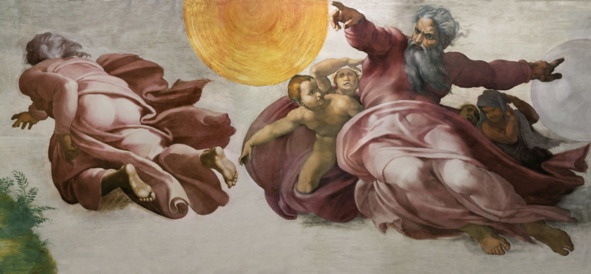 Он пишет и акт финала на торцовой стене. Страшный суд, где Создатель посылает своим жестом в тартары все, что он сотворил.
