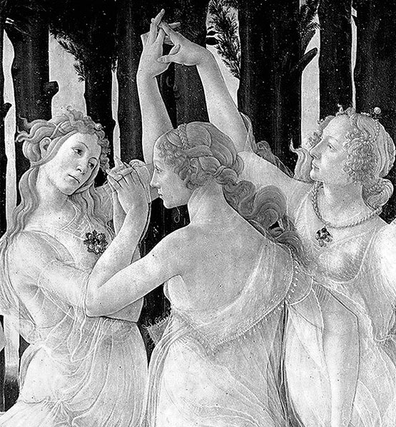 Сандро Боттичелли. Весна. Фрагмент. Танец Граций. 1478. Галерея Уфицци, Флоренция