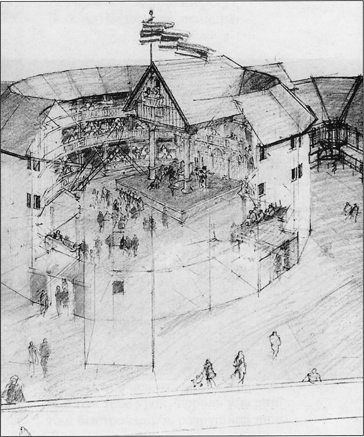 Театр «Глобус» труппы «Слуги лорда Камергера» лишь по видимости напоминает «круглый» театр. Он был иным и по сути, и по принципам внутренней организации пространства. Гладиаторы и медвежьи забавы – это развлечения нетребовательной публики. Шекспира же вот уже 400 лет ежедневно играют во всем мире. Самое название театра – «Глобус» – весь шар земной. В названии театра соединены смыслы небесного тела, всемирной истории, народов, народа и человека. Ибо «Глобус» имеет центр в любой точке окружности.
