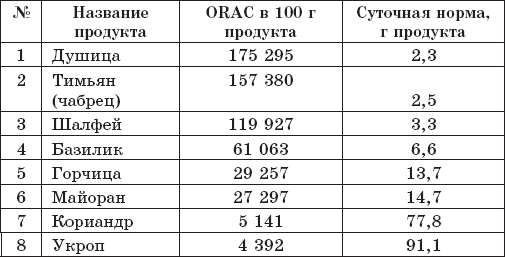 Поскольку некоторые из указанных в таблицах овощей бывают разными (например, белокочанная и краснокочанная капуста) и едим их мы в разном виде (сыром, вареном и т. д.), то где нужно я указала лишь максимальное значение ORAC для данного продукта, подробности читайте ниже, в описаниях этих продуктов.