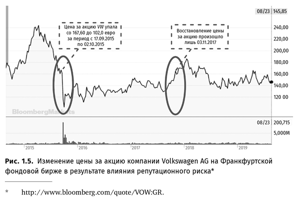 «Интерфакс», 22.09.2015 г.Наглядной иллюстрацией может служить график поведения цены за акцию компании Volkswagen AG на Франкфуртской фондовой бирже (рис. 1.5).