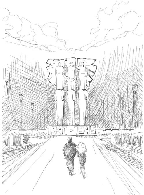 И вот уже мы идём с папой под ручку мимо памятника павшим воинам, а в миру просто «Трое вышли из леса». Он молчит, как с силами собирается. Такое за ним не водилось раньше.