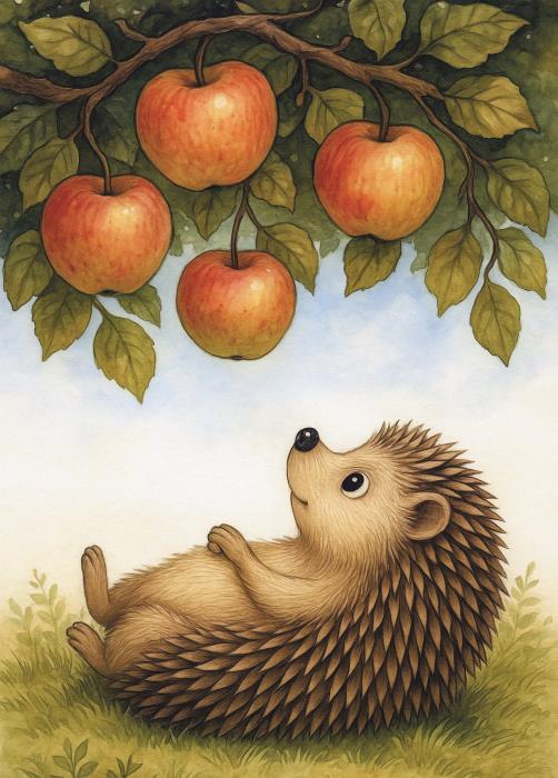 Но Алёшка занимался именно этим – он лежал на Ёжиковой полянке под старой яблоней (как раз на спине) и ждал. Ждал, когда ему в лоб прилетит райское яблоко. При этом Алёшка постоянно прислушивался и принюхивался – вдруг появится Хитрая Лиса и ему нужно будет успеть превратиться в колючий шар.