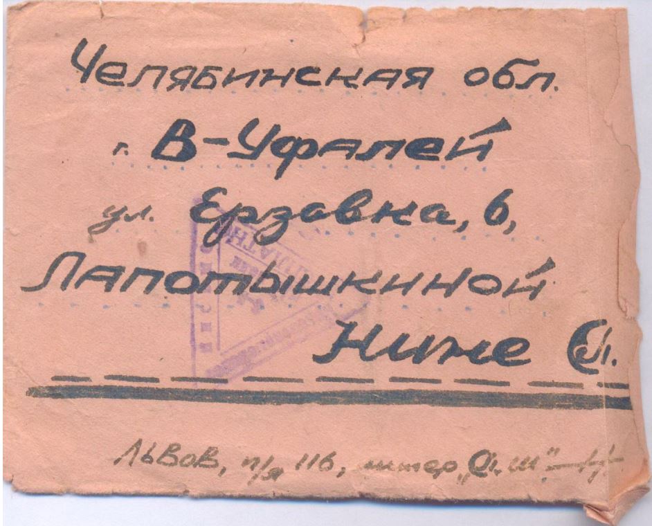 Номер полевой почты (станции и т.д.) – Львов, п/я 116