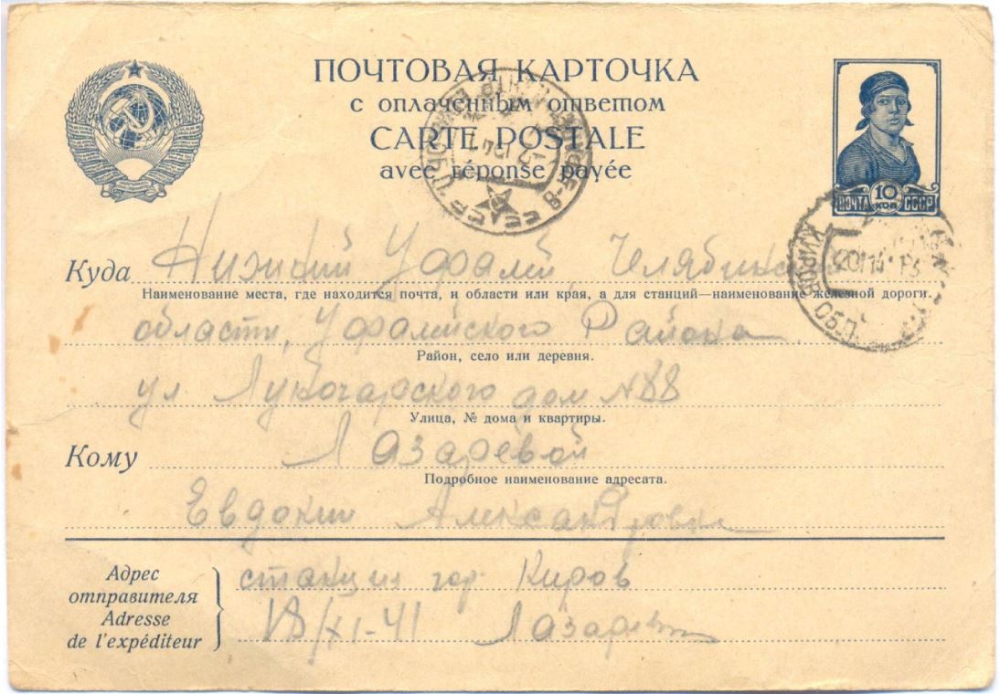 Получатель – Евдокия Александровна Лазарева