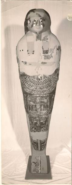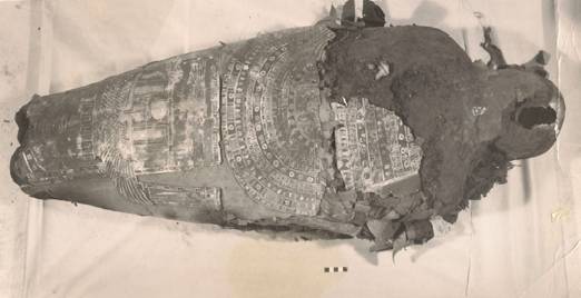 Изрядно покопавшись в гробу, я нашла кое-какие дополнительные осколки и один глаз, другой сделала по образцу. Но не было овала лица. Тогда нашла похожую мумию по размеру и через папиросную бумагу, накрыв марлей, сделала гипсовую посмертную маску. Затем приделала её моему жрецу, туда же посадила глаза, фрагменты носа и губ. Выглядеть он стал лучше. Каждый день, приходя в Некрополь, я просила у этого человека прощения за его нечеловеческое положение. Очевидно, поэтому «злые духи египетских пирамид» меня не тронули. Здоровье моё, в отличие от других иностранных исследователей, не повредилось. Приходила хранительница древнего Египта и задумчиво произносила: «Как вы думаете, Ирина Анатольевна, может нам обратиться с ходатайством к администрации Петербурга о разрешении захоронить жреца. Ведь вот валяется на полу, никому не нужный?» Я возражаю: «В Древнем Египте существовали совершенно другие обычаи и традиции, закапывать умершего в землю, да ещё и мумифицированного, неправильно». На самом деле – довольно трудная этическая задача. Когда я закончила реставрацию, мумия без картонажа вернулась в свой деревянный гроб. Для музея она не представляла интереса. А живописный картонаж, исполненный в сине-зелёной гамме, испещрённый иероглифами, значками и символами, сияющий золотым лицом, был помещён на пенопластовую болванку, специально изготовленную. Закончив реставрацию и заодно исследование картонажа, я испытала смешанные чувства. Удовлетворение от хорошо исполненной работы, где было много находок и придумок и какой-то непонятной тоски по поводу несовершенства этого мира.
