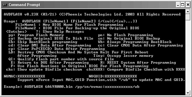 На рис. 1.7 показан список команд из версии 8.23K утилиты AwardFlash.