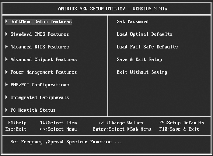 Утилита BIOS Setup различается в зависимости от материнской платы. Некоторые утилиты имеют графический интерфейс, а другие – только простое меню. Чаще всего встречается система меню. Пример такой системы показан на рис. 1.8.