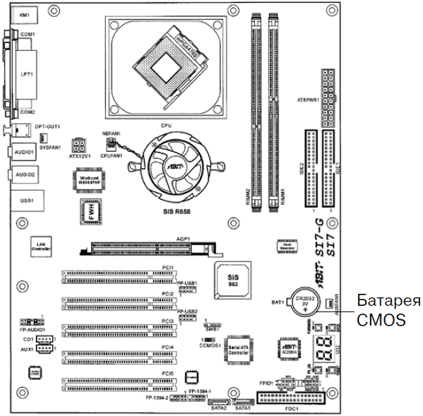 Положение батареи на данной материнской плате показано на рис. 2.2. Определив местоположение батареи, вы можете идти дальше.