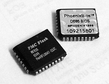 Шаг второй: подготовка компьютера к записи из флэш-памятиНе все компьютеры подходят для «горячей» записи. Нужный вам компьютер должен использовать такой же чип BIOS. Чип BIOS поставляется в виде прямоугольного чипа DIP или квадратного чипа PLCC. Пример чипов PLCC BIOS показан на рис. 2.5.