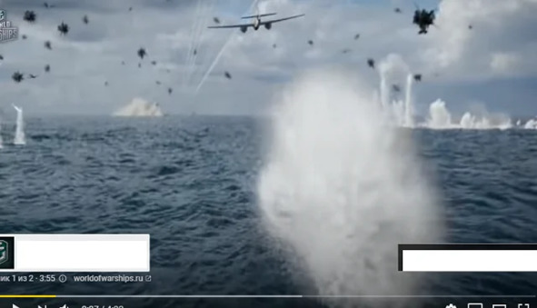 В результате попаданий, у бомбардировщика отрывается двигатель, самолет уводит в сторону от корабля. … Все видео https://www.youtube.com/watch?v=ZXchnjkOnWM