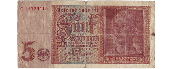 Jest to dość solidny projekt i wykonanie Reichsmark z 1942 roku. Widoczna jest surowa estetyka nowego porządku państwowego. Wynagrodzenie porucznika niemieckiego (Obersturmfuhrer) wynosi 220 marek miesięcznie. Siła nabywcza marki w głównym zestawie produktów i usług jest prawie taka sama, jak w przypadku nowoczesnych 7,5 dolara. Kurs do amerykańskiej waluty, o dziwo, pozostał stabilny, aż do 1945 roku