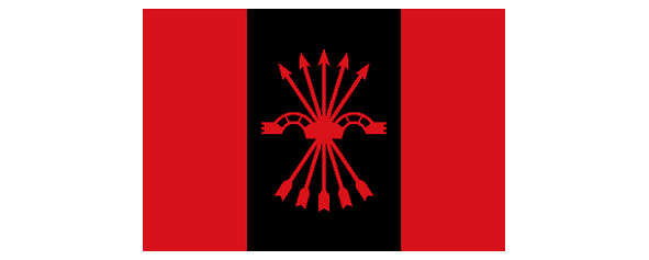 Emblemat hiszpańskich faszystów, inaczej – franciści, fangangiści, partia Falange Española. Strzały i jarzma są symbolami unifikatorów Hiszpanii, monarchów katolickich Izabeli Pierwszego Kastylijczyka i Ferdynanda Drugiego Aragonii. Ta forma faszyzmu istnieje nawet po zakończeniu II wojny światowej, aż do 1975 roku – czasu naturalnej śmierci dyktatora Franco Franco