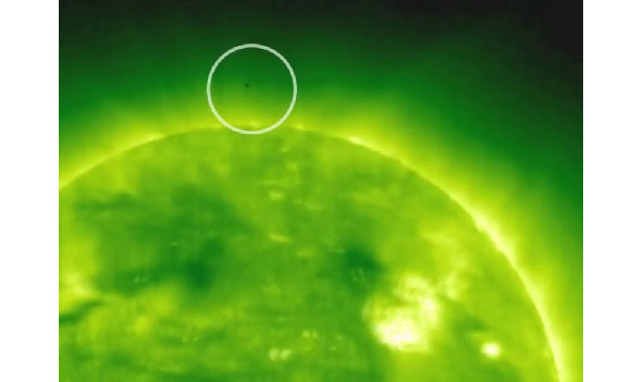 Аппараты миссии «Стерео» подбираются к Солнцу и делают качественные снимки того, что происходит в ее фотосфере. Оказывается, что это теплое местечко облюбовали инопланетяне. Посмотрите на космический корабль величиной чуть меньше Земли, купающийся в потоке бешеной радиации, при температуре сотни тысяч или миллионы градусов. Официальная фотография НАСА
