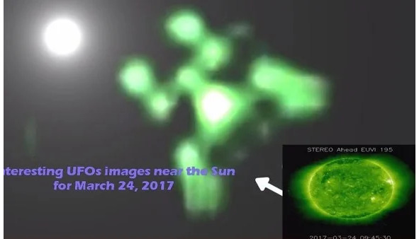 На фотографии мы наблюдаем вихрь, воронку или нечто иное, странной симметричной формы …энергетический канал, связывающий НЛО с естественным, бушующим миллиарды лет гелий-водородным реактором Солнца