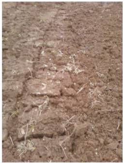 Как только вычешу сорняки, опять задействую лопату-рыхлитель. Обрабатываю повторно, тоже поперёк предыдущих проходов. На следующем фото видны эти две стадии обработки земли.