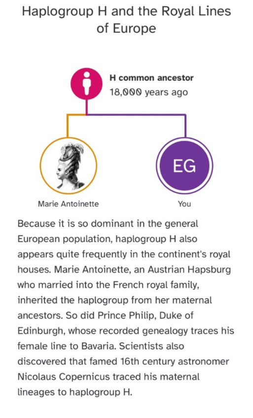 Иногда я думаю, сколько даже этим двум родам Воробьёвых, движущимся с севера и с юга, пришлось пройти и пережить, прежде чем сойтись в одной точке – чтобы на свет появилась я. Помню, как мама сокрушалась, что в нашем роду нет полячек – ах, какие они красивые и знающие себе цену, говорила она, хотя моя тётя Лариса Амелина, жена старшего сына тёти Раи дяди Олега, удивлялась моей юной красоте, что я похожа на польку. Когда я получила результат генеалогического исследования, возможность сделать которое мне подарил Александр Константинов, я и сама была удивлена – оказывается, помимо России, Украины и Белоруссии, мои предки жили в Польше, более того, один из прапрапрапрадедов был чистый финн, а другой – монгол или маньчжур. И, конечно, та самая капля королевской крови, которой, по словам моей мамы, ей было бы достаточно, тоже в нас есть: это общий предок с Марией-Антуанеттой – правда, очень, очень давний.
