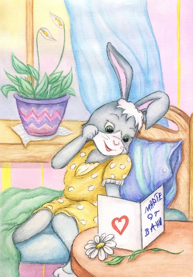Ване очень хотелось порадовать сестру. Устроить настоящий сюрприз. Марта удивится, если утром на ее столике появится открытка. Значит зайчику нужно будет ночью оставить открытку в комнате сестры.