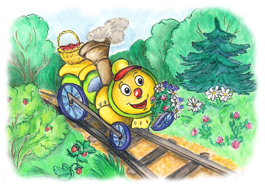 На следующий день паровозик решил порадовать маму. Ведь она самая любимая, самая родная. Он отпросился погулять и отправился к цветочной поляне. Он сделал букет из самых красивых цветов – ромашек, колокольчиков и клевера. Затем Чуки-Чу поехал за ягодами. Он набрал сочной сладкой малины, которую мама любила больше всего.