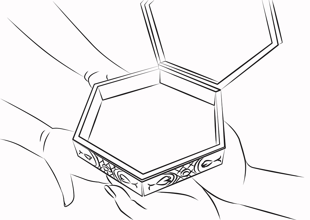 Нарисуй в шкатулке любовь, радость, счастье, понимание, веселье. А потом возьми их ручками и положи себе в животик.