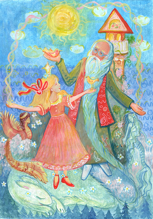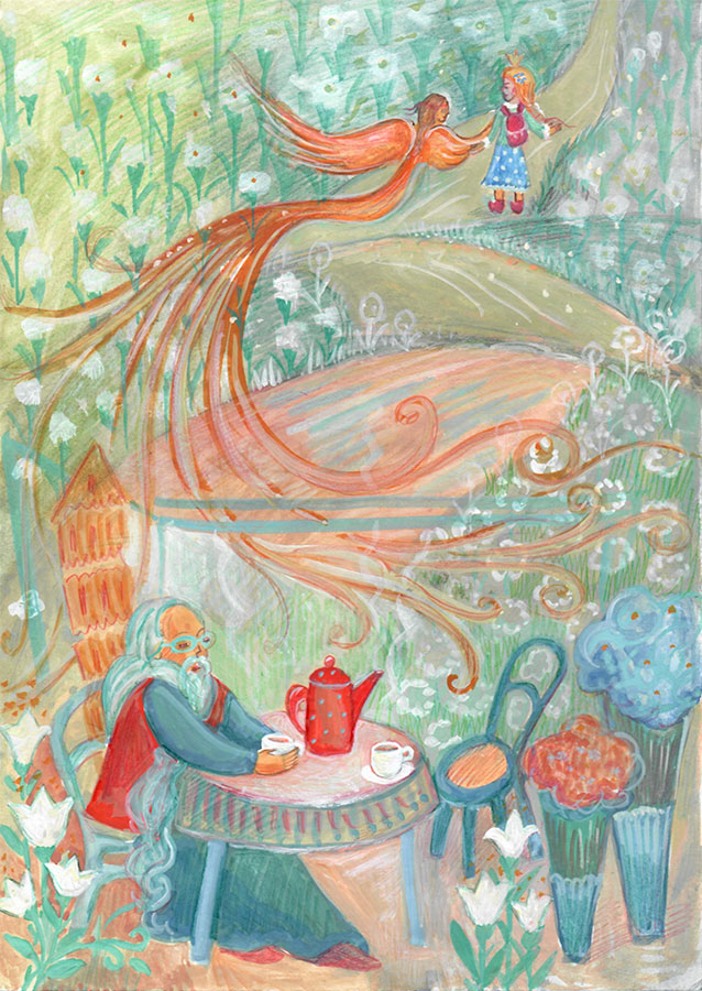 На следующий день за завтраком (который, надо сказать, был очень вкусным и питательным и состоял из сырников с мёдом, сметаной, тремя видами варенья и, конечно же, травяными чаями на выбор, травы для которых собирала сама Принцесса) она рассказала так сильно тронувшую её историю своему прапрапрапрапрадедушке – самому близкому для неё человеку во всём Триморье. Мудрец с интересом слушал свою прапрапрапраправнучку и думал о том, как не хватало Принцессе подобных живых историй. Как она нуждалась в них и как он совершенно не мог ей в этом помочь… И тогда Мудрец предложил юной девушке отправиться в путешествие вместе с Сирин и, конечно, свою посильную в этом помощь. Ведь он знал так много и в то же время так мало.