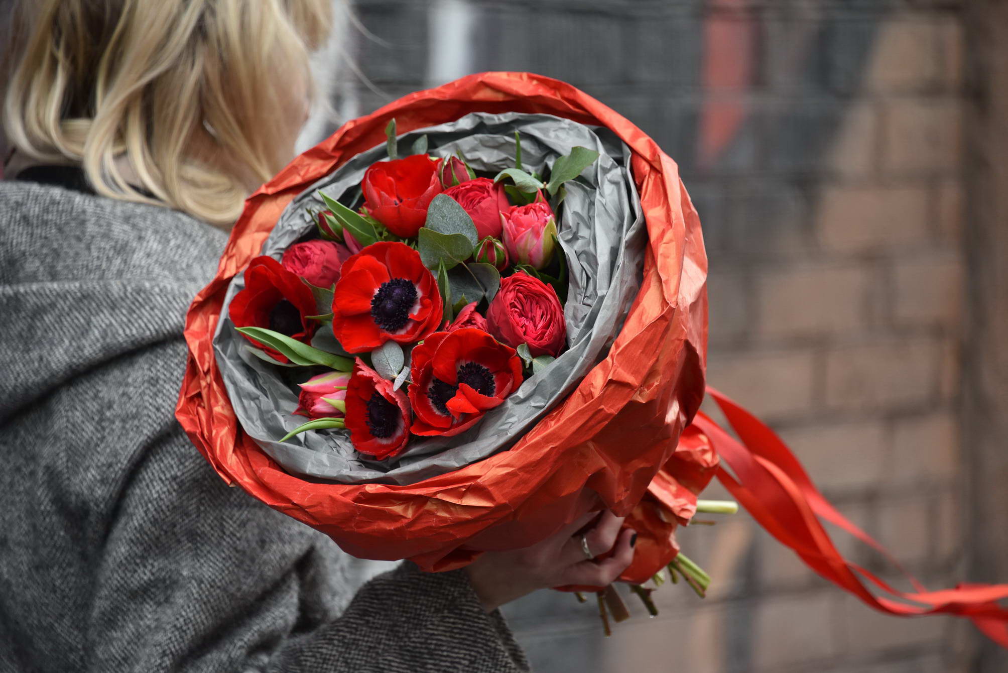 Форма букета с анемонами неидеальная, но зато видны почти все цветы.