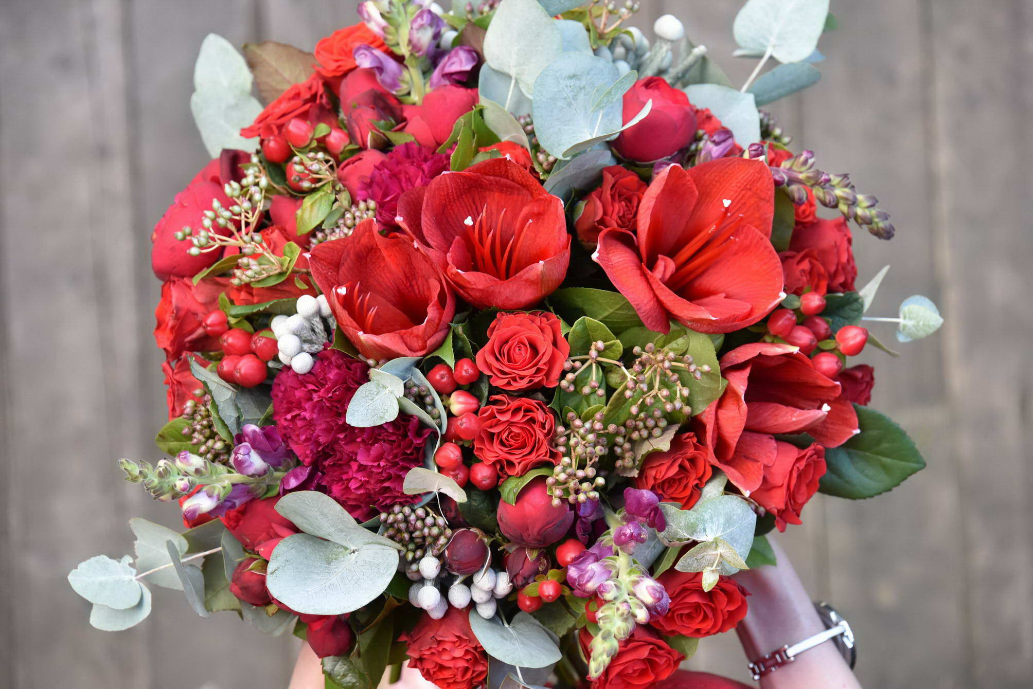 Объёмному букету с амариллисами вид с боку совсем «не идёт».