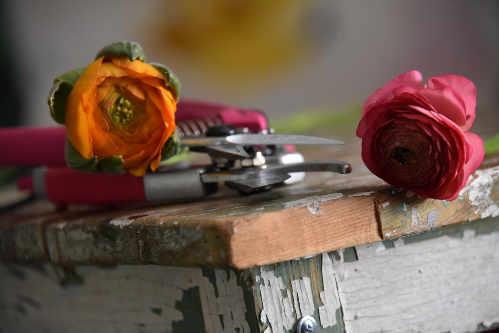 – Флористические ножницы – основной инструмент флориста для подрезания стеблей растений и ножки у букета.
