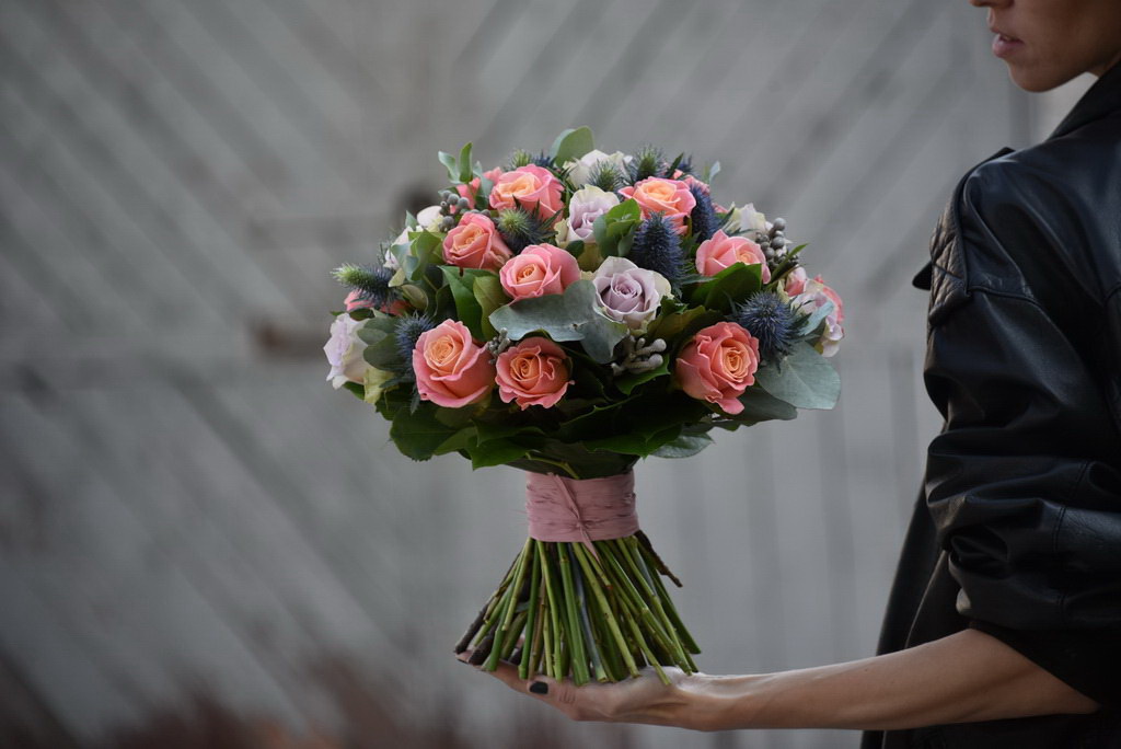 На заметку! Если вы работаете правой рукой, а держите букет в левой, то каждый цветок в нем имеет наклон сверху вниз слева направо.