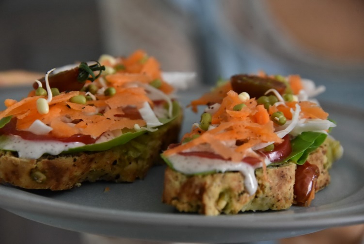 Тост с чечевичным фаршем и кабачком