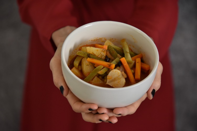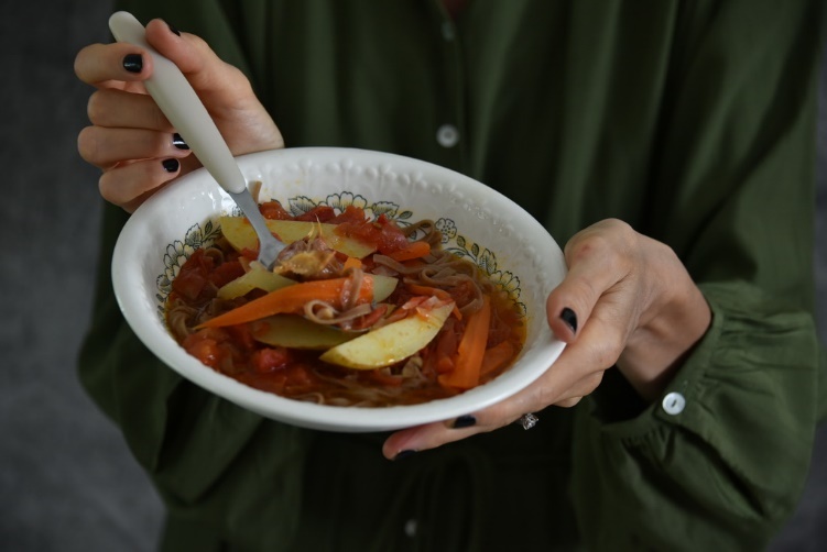 По легенде это блюдо появилось, когда встретились путники: у каждого из них были продукты, из которых все вместе они смогли приготовить лагман. Разновидностей его, как и всех остальных блюд не сосчитать: столько же, сколько поваров и хозяек. Здесь, нетрадиционный овощной лагман, но с узбекскими нотками.
