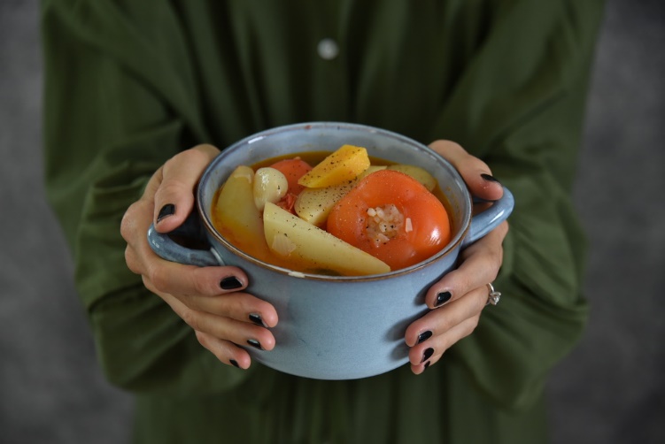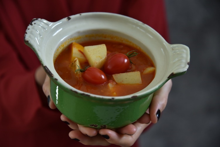 Томатный суп с картофелем в кожуре