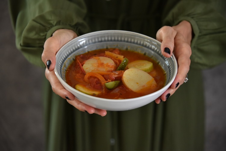 В этот суп можно добавлять любые овощи! Основная идея – много свежих томатов и картофель, слегка обжаренный в мундире! Это придаёт супу особенный незабываемый вкус и аромат! И, конечно, он идеален к любому гарниру!