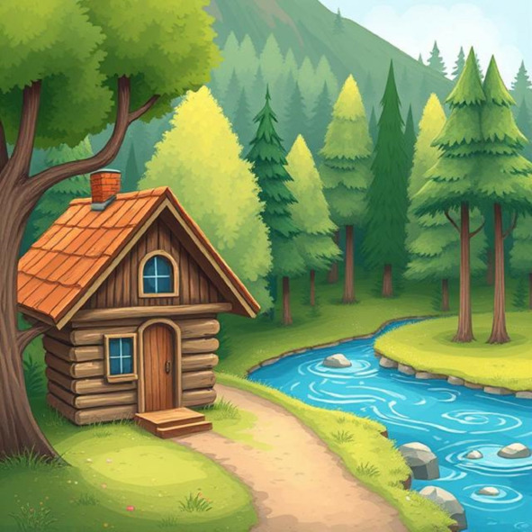 Летом Василёк гостил у бабушки. У бабушки был небольшой домик, который стоял рядом с речкой и лесом. Речка была синей, а лес зелёным.