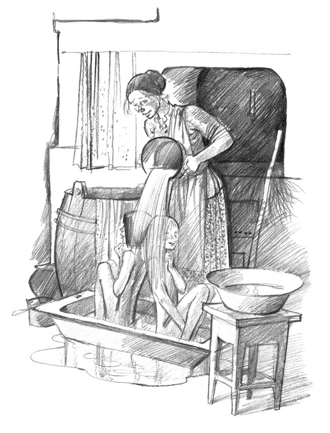 Таиска выкатилась из печки, как колобок. А Валентинка опять зацепилась и посадила на плечо чёрную отметину. Пришлось замывать. Мать посадила их в корыто, облила тёплой водой, дала холщовое полотенце.