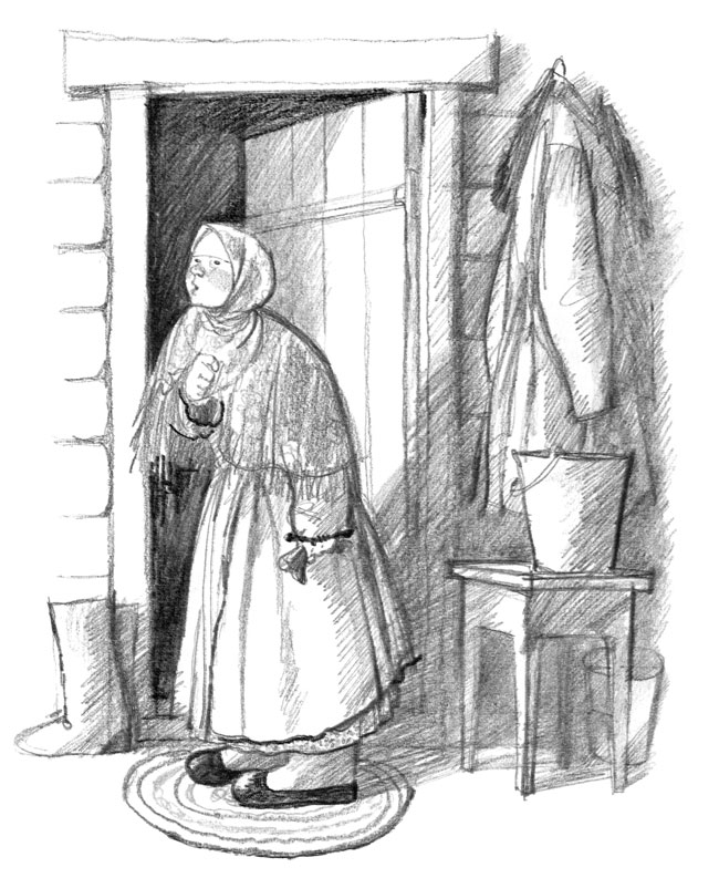И вдруг пустой, неуютной и печальной показалась ей изба. Словно солнце ушло за тучу, словно погас огонёк, который озарял её.