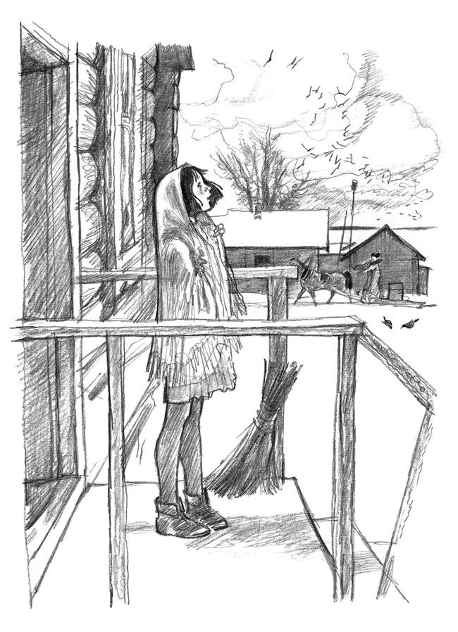 – Молодая хозяйка, вставай! Пора печку топить. В школу не пойдёшь сегодня – дома некому.