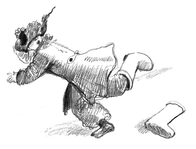 – Как же теперь домой-то идти? С тебя так и льёт. Полны валенки небось. А ну-ка, скинь!