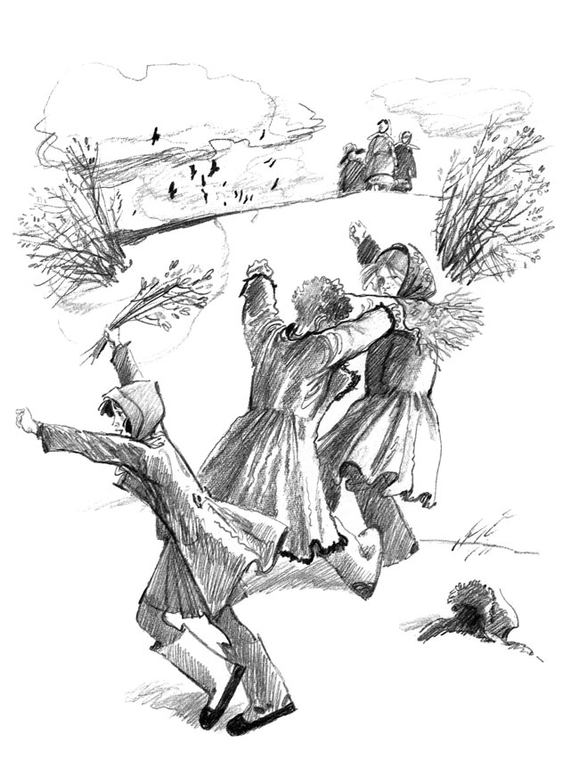 – Мальчишки! – крикнула Варя. – Вербу отнимут! Бежим!