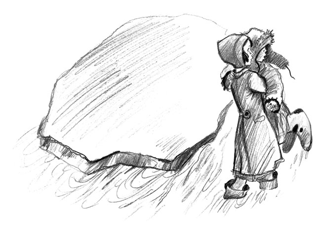 Снежки так и летели через голову и то и дело больно стукали в спину. Видя, что Валентинка отстаёт, они сосредоточили весь свой снежный огонь на её синем капоре.