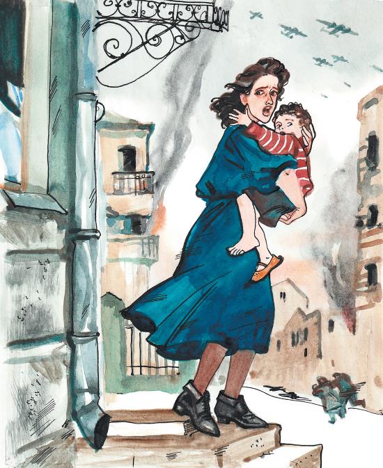 Ей сразу вспомнился страшный день, последний её день в городе… Город бомбят. Их дом стоит, окутанный дымом и пылью. Вместо окон тёмные дыры. На ступеньки выбегает мама с маленьким Толей на руках. Валентинка видит её как живую. Вот она – в синем платье, с чёрной развевающейся прядкой волос. Она испуганно кричит: «Валя! Валечка!..» Вдруг – удар. Бомба… Валентинка опомнилась среди каких-то разбитых брёвен – видно, её отбросило волной – и отсюда увидела чёрную яму, груды обломков и клочья синего платья под рухнувшими кирпичами… Она царапала эти кирпичи, раскидывала их, кричала, звала маму. Мама не откликнулась. Чужие женщины оттащили её от развалин и насильно увели куда-то. И потом дорога, деревни, снега, лес… И всё время мороз…
