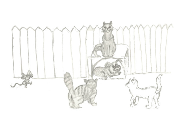 Смайк поддержал идею Блэки и уже хотел прыгнуть, но его в прыжке подрезала Блэки. Я не хотел не к кому лесть, особенно к собакам! Но тогда моя кошечка подумает, что я трус, а я не трус, я Феликс, самый чёрный кот в этой деревне. Поэтому после таких мыслей я тихонько вздохнул и прыгнул. Друзья меня уже дожидались около забора с другой стороны. Я элегантно приземлился, поднял голову, и зашагал в перёд!!!